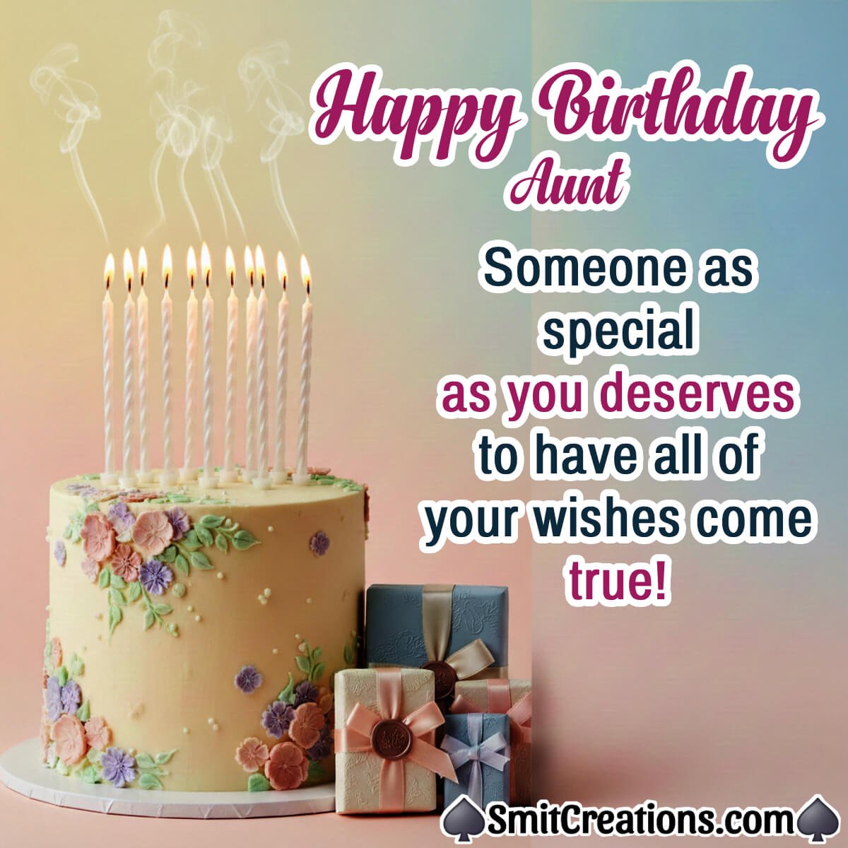 Happy Birthday Dear Aunt There’s lots of fun & happiness coming to you. Just make a wish & I know it’ll come true!