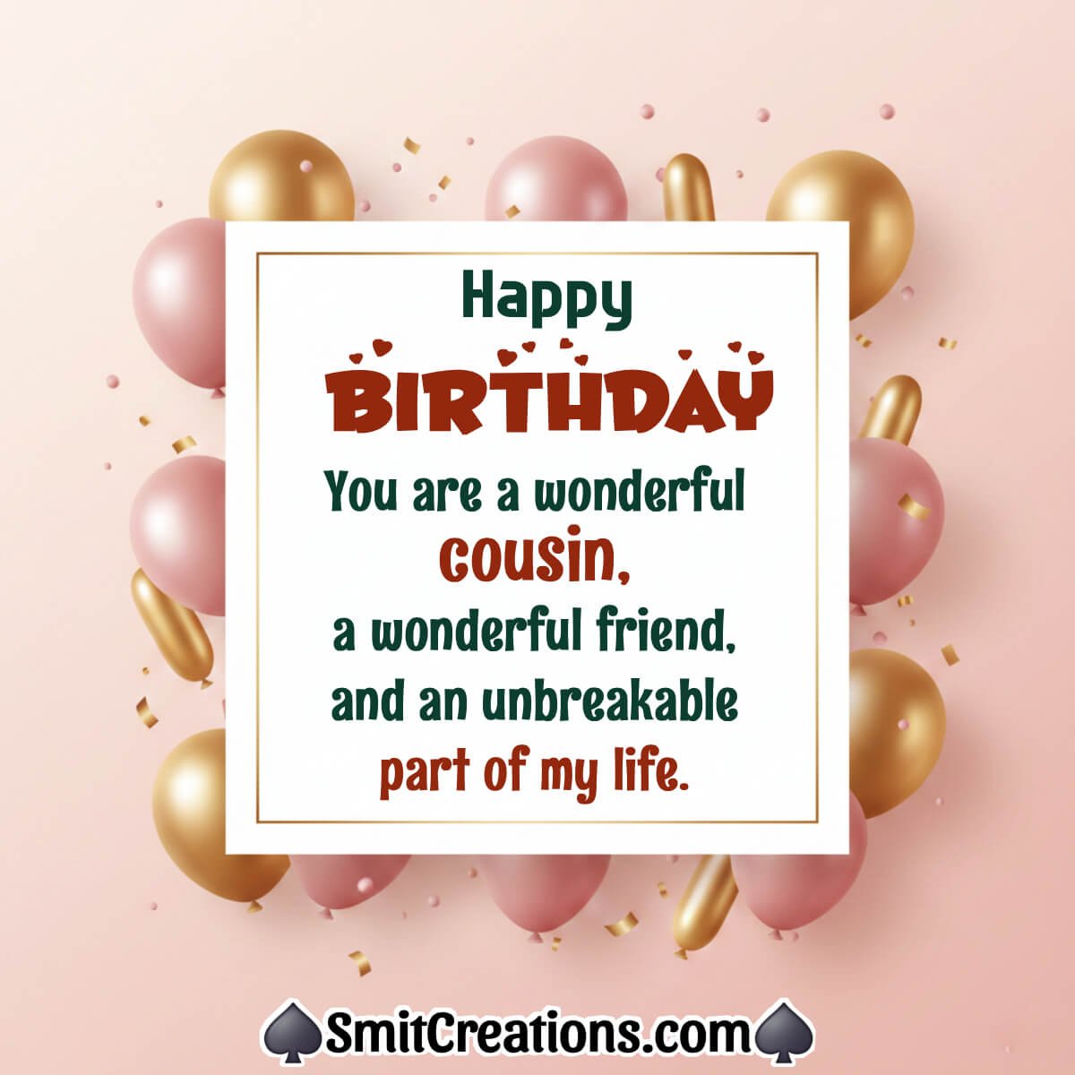 You are a wonderful cousin, a wonderful friend, and an unbreakable part of my life. Happy Birthday!