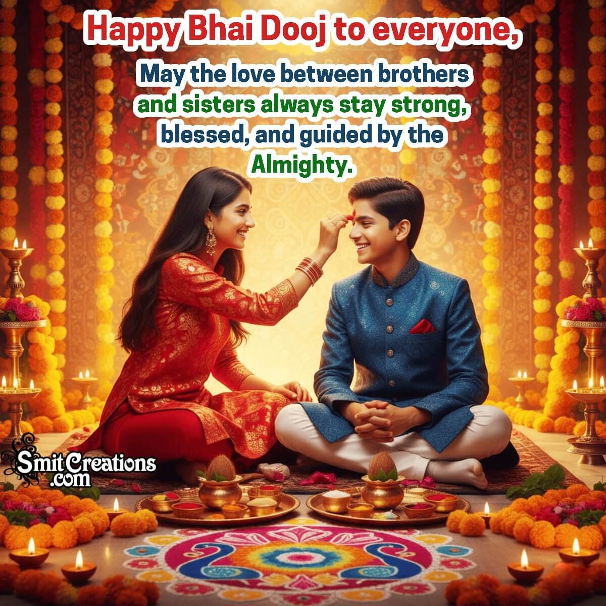 Happy Bhai Dooj to everyone, may the love between brothers and sisters always stay strong, blessed, and guided by the Almighty.