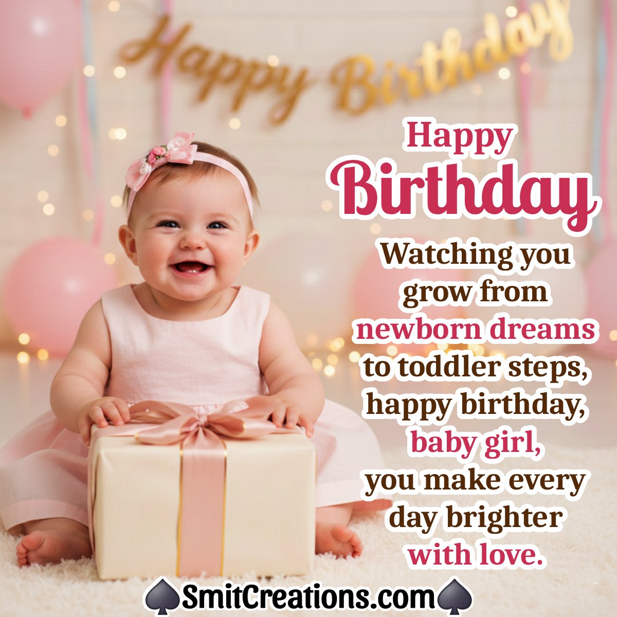 Watching you grow from newborn dreams to toddler steps, happy birthday, baby girl, you make every day brighter with love.