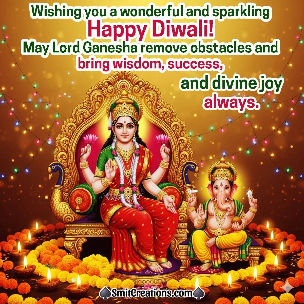 Wishing you a wonderful and sparkling Happy Diwali! May Lord Ganesha remove obstacles and bring wisdom, success, and divine joy always.