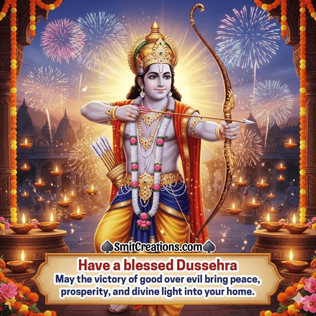 Have a blessed Dussehra! May the victory of good over evil bring peace, prosperity, and divine light into your home.