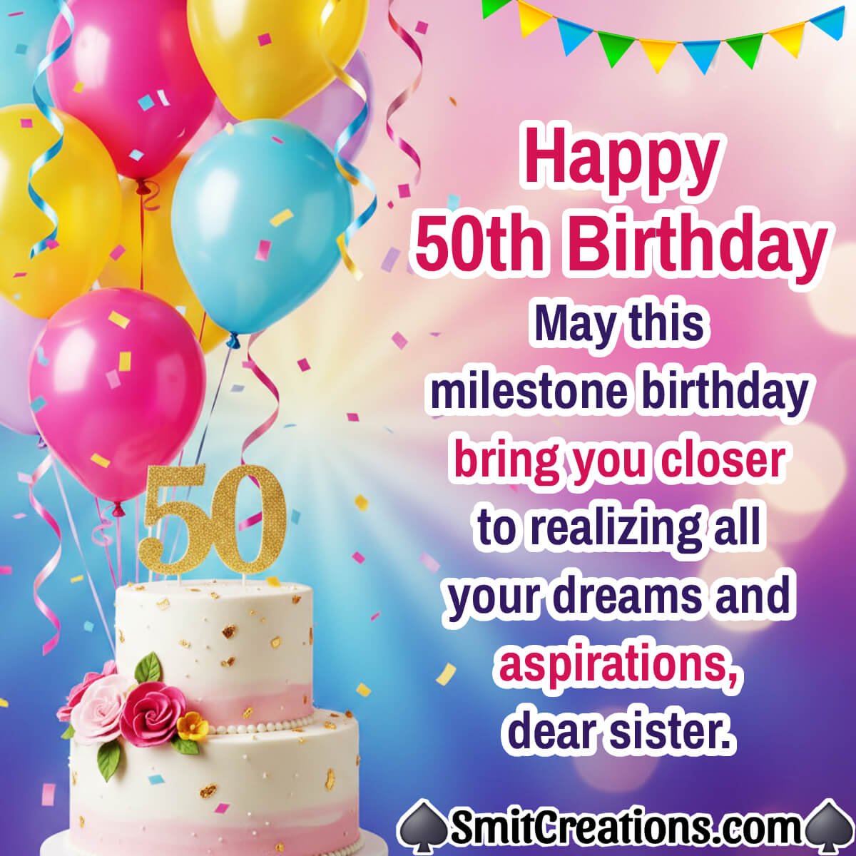 May this milestone birthday bring you closer to realizing all your dreams and aspirations, dear sister. Happy 50th birthday!