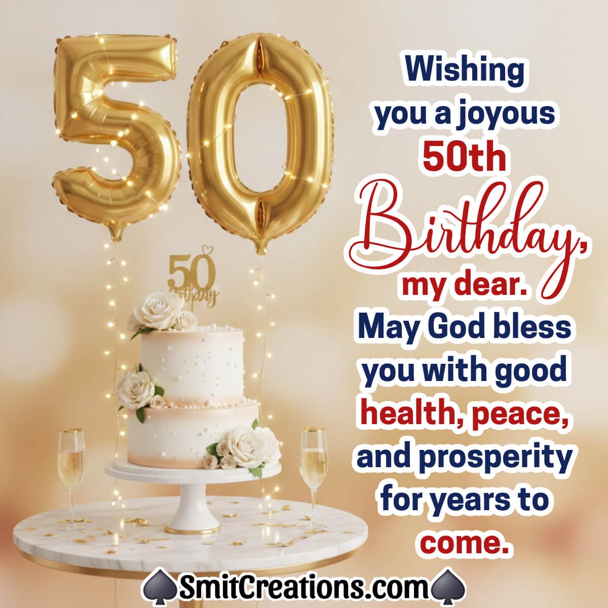 May your 50th birthday be filled with love, laughter, and joy, and may God bless you with good health and prosperity for years to come. Happy birthday!