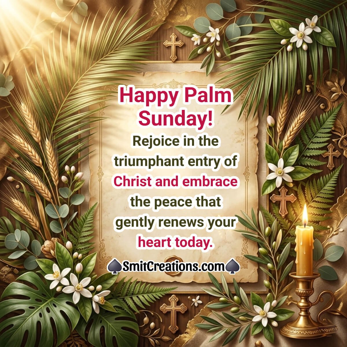 May Palm Sunday bring peace, joy, and faith, filling your heart with love as you walk in Christ’s everlasting light.