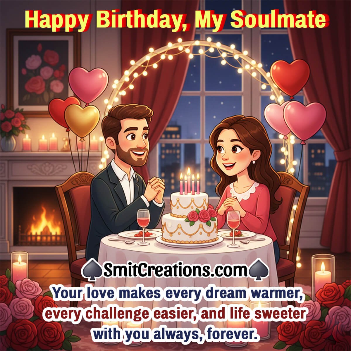 Happy birthday, my soulmate, your love makes every dream warmer, every challenge easier, and life sweeter with you always, forever.