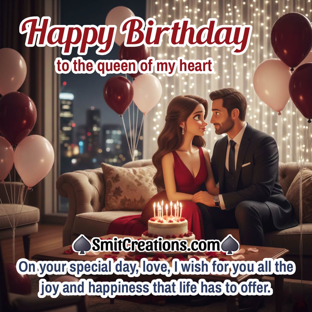 Happy Birthday to the queen of my heart! On your special day, love, I wish for you all the joy and happiness that life has to offer.