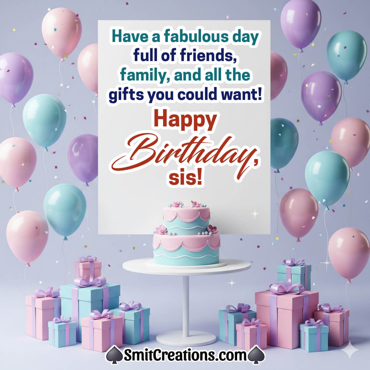 Happy Birthday, Sis! 🎉 You’re not getting older; you’re just upgrading to a more fabulous version. May your day be filled with laughter, joy, and cake – lots and lots of cake!